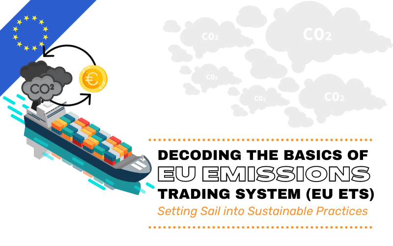 The EU ETS infographic provides a visual breakdown of the European Union Emissions Trading System as it applies to the maritime sector. Since 2024, shipping companies have been required to purchase and surrender EU Allowances (EUAs) for their verified CO2 emissions on voyages to, from, and within EU/EEA ports.